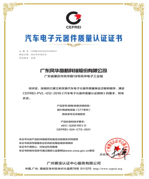 目前利来国际车规瓷介电容器已通过IATF16949汽车质量管理体系认证,系列产品继片容、片阻、电感器、压敏电阻、铝电解电容器等后通过AEC-Q200认证,并顺利通过战略客户VDA6.3现场审核,已与国内多家汽车电子、动力电池配套厂家建立合作关系。